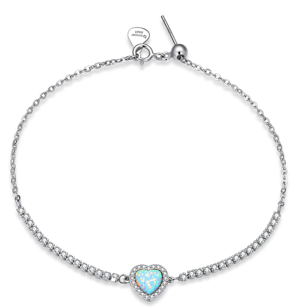 BRANSOLETKA SREBRNA - OPALIZUJĄCE SERCE