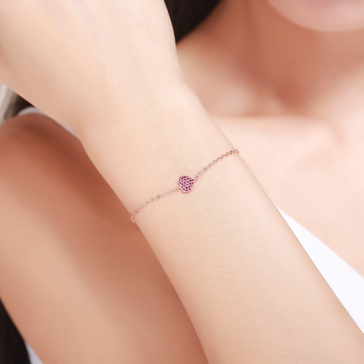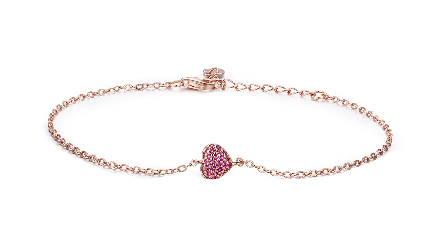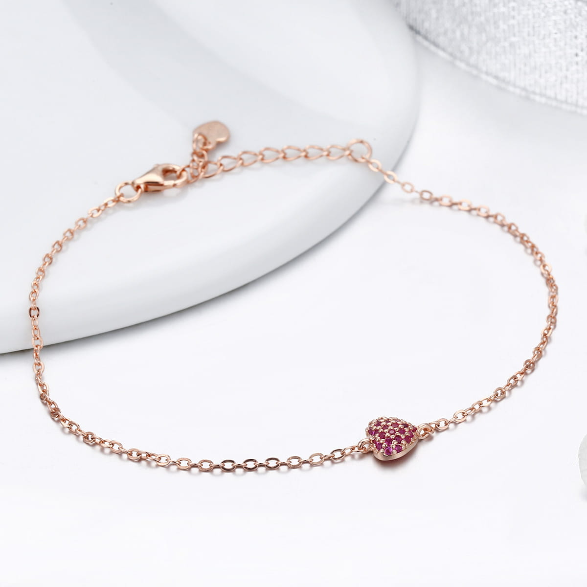 Bransoletka Srebrna 925 - Serce Rose Gold Czerwiński