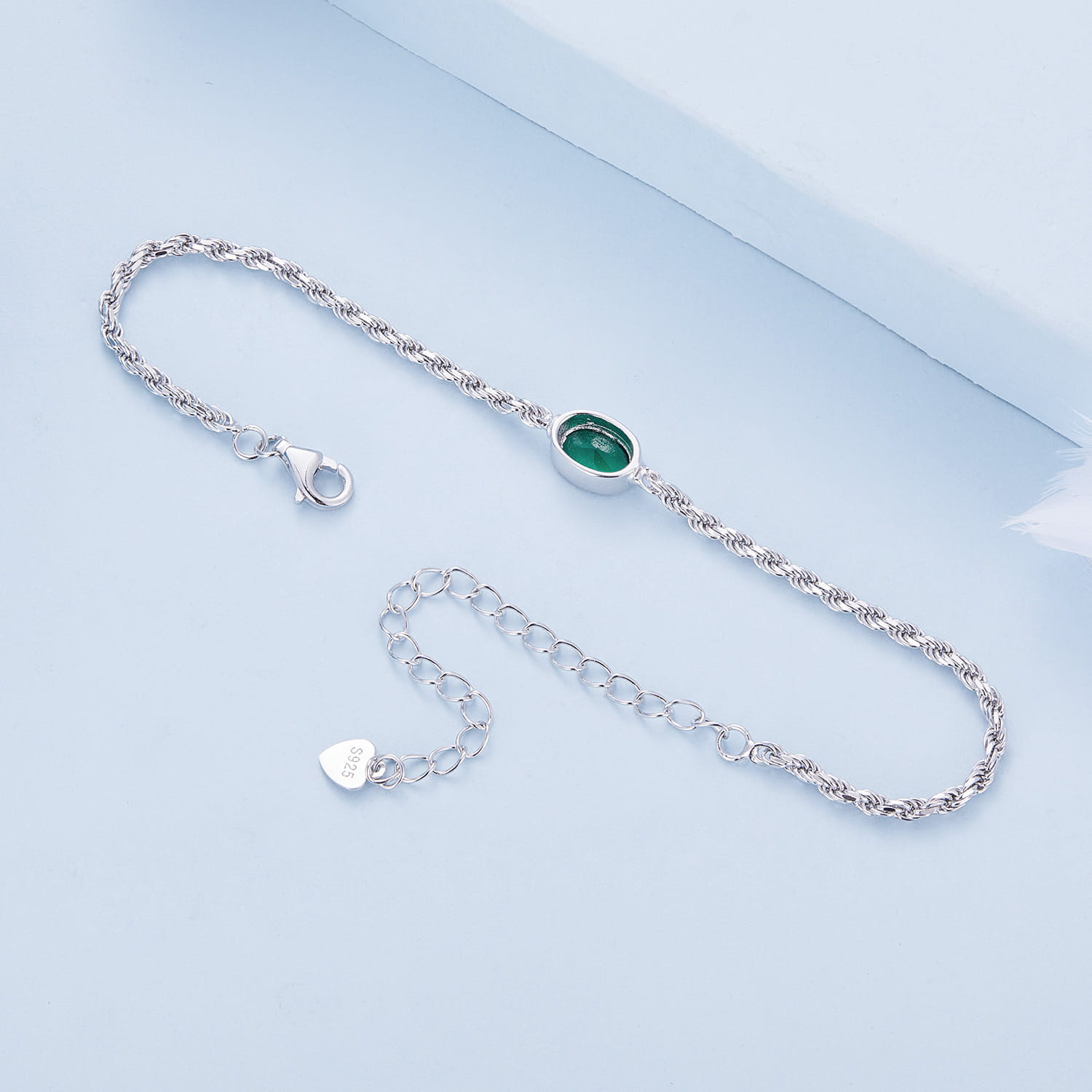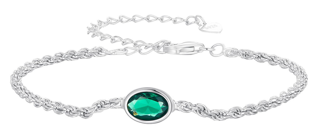 Bransoletka Srebrna 925 - Zielony Kamień Czerwiński