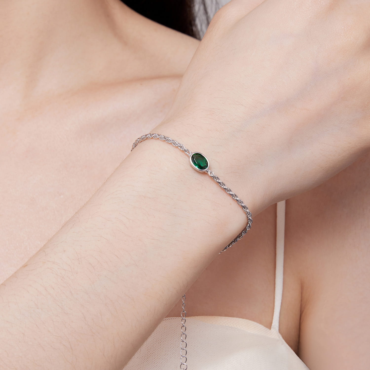 BRANSOLETKA SREBRNA - ZIELONY KAMIEŃ