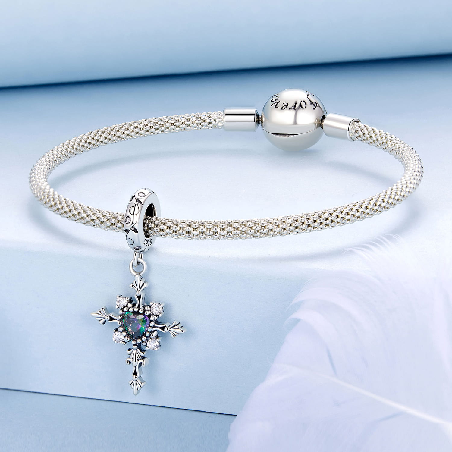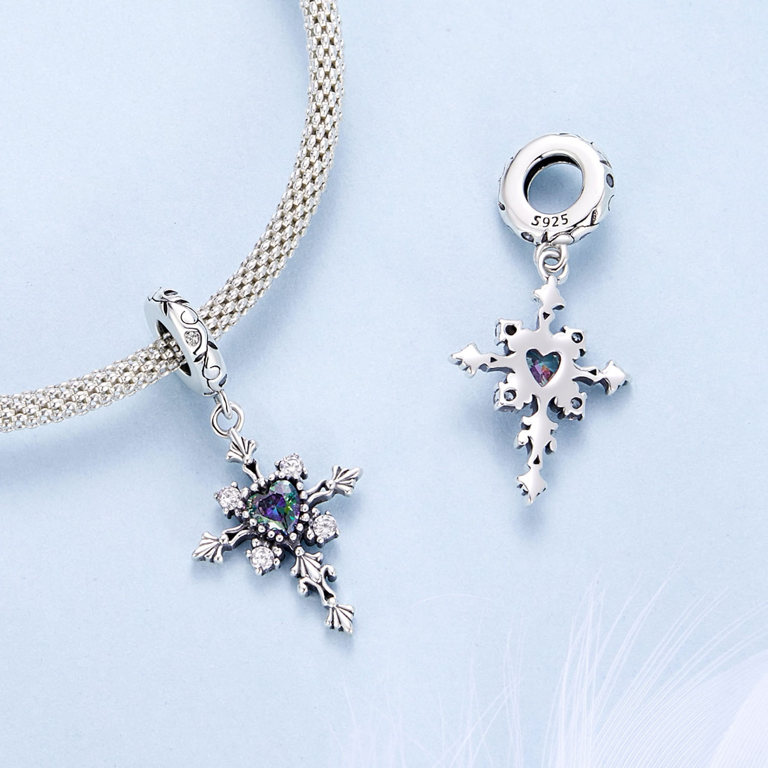 Charms Srebro - KRZYŻ ZE SZKŁEM