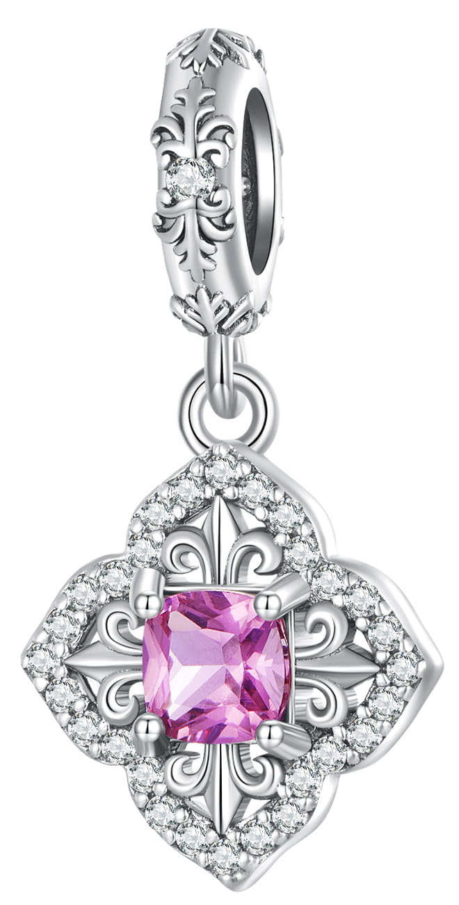 Charms Srebro - Kwiat z Różowym Oczkiem to piękny charms wykonany ze srebra próby 925. Charms ma kształt kwiatu, z różowym oczkiem w centrum, otoczonego promieniastymi płatkami. Całość tworzy bardzo subtelną i delikatną biżuterię. Ten piękny charms może być idealnym dodatkiem do Twojego ulubionego naszyjnika lub bransolety, dzięki czemu stworzysz unikalny look! Idealny na prezent dla przyjaciółki, siostry, mamy czy dla samej siebie.