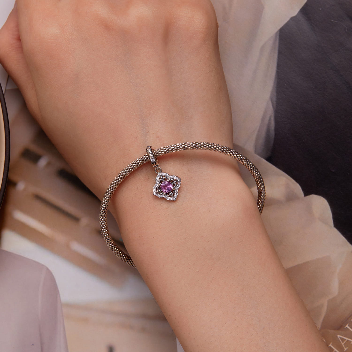 Charms Srebro - KWIAT Z RÓŻOWYM OCZKIEM