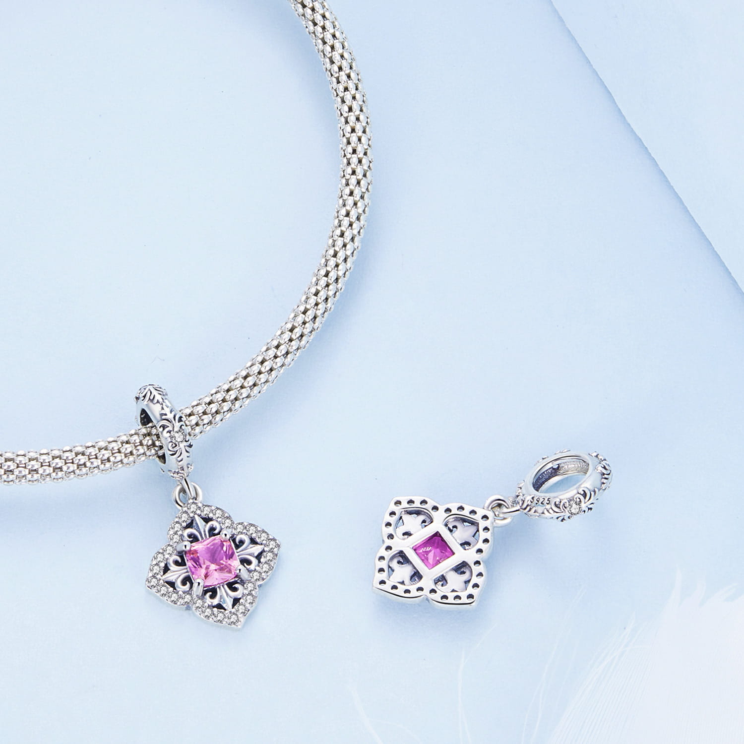 Charms Srebro 925 - Kwiat z Różowym Oczkiem Czerwiński
