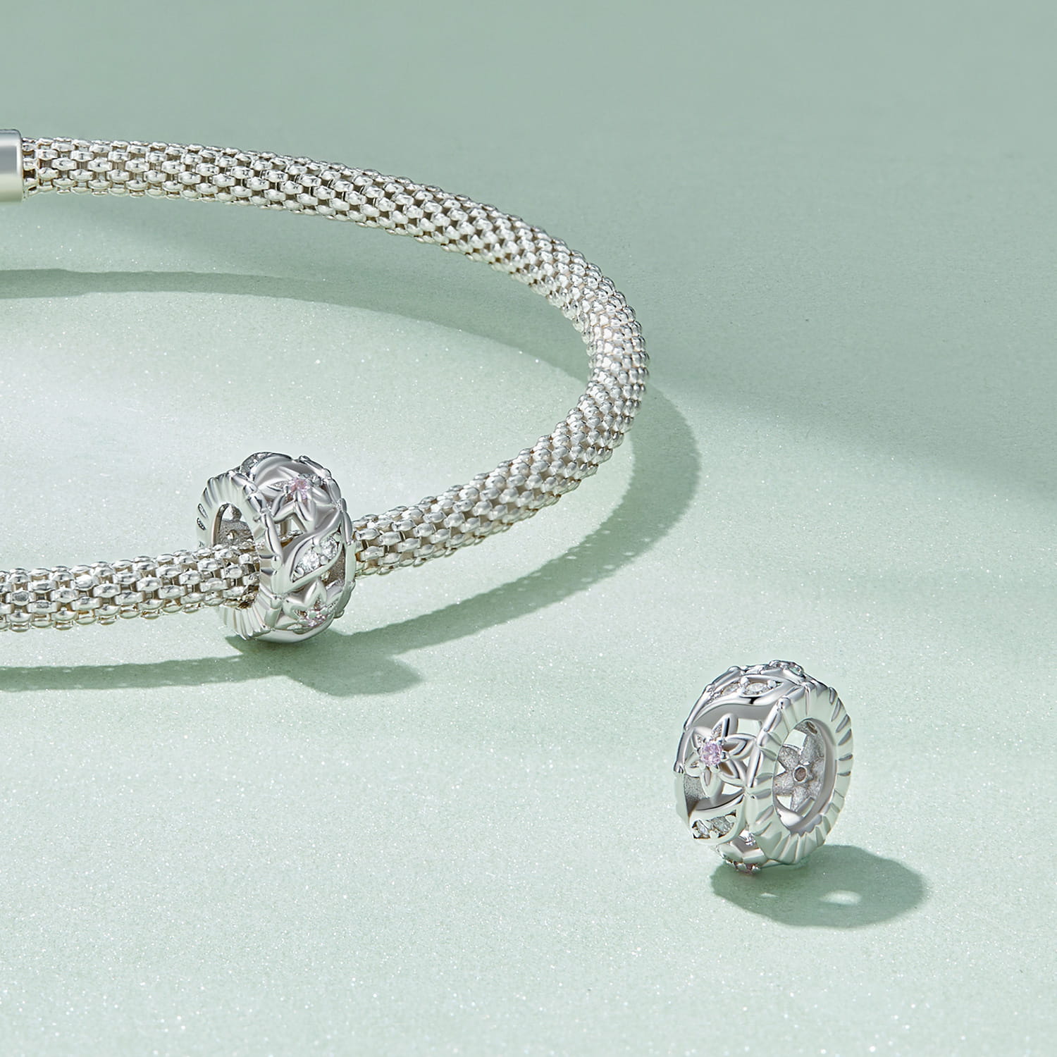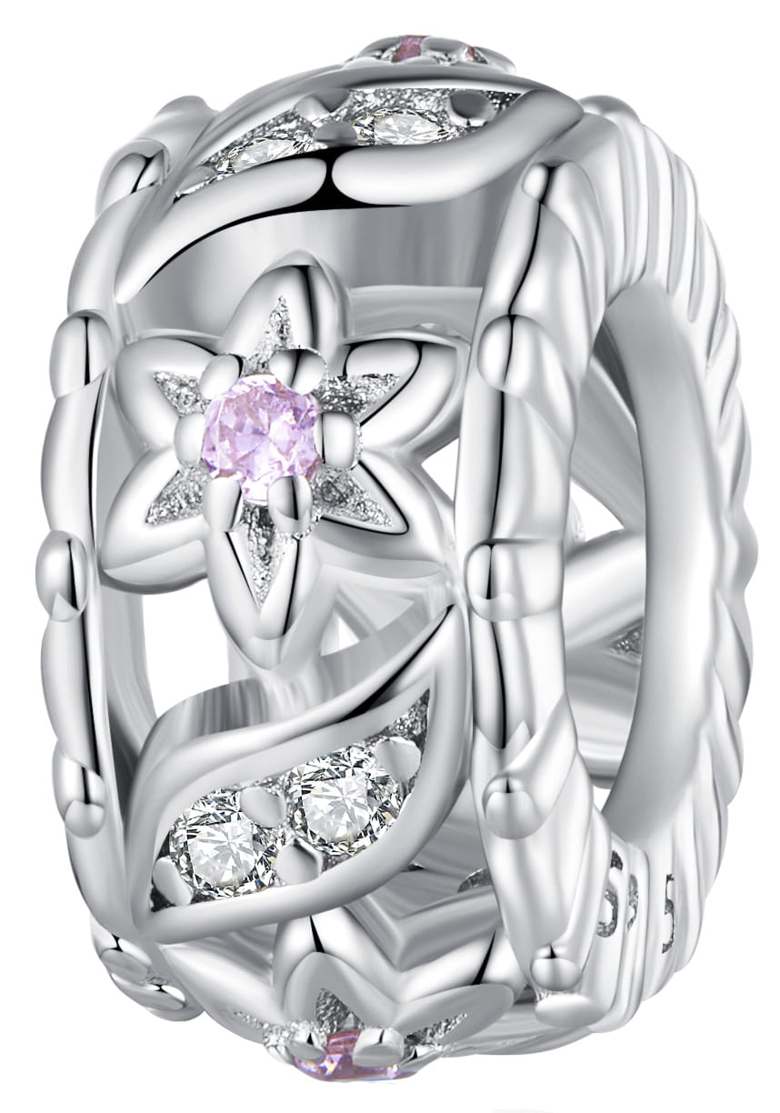 Charms Srebro 925 - Kwiecisty Koralik Czerwiński