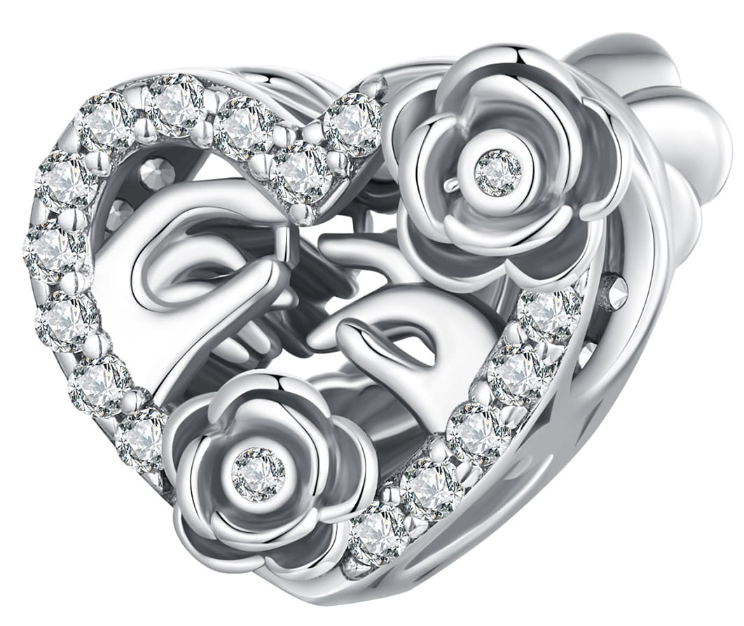 Charms Srebro - SERCE Z RÓŻĄ, SREBRNE