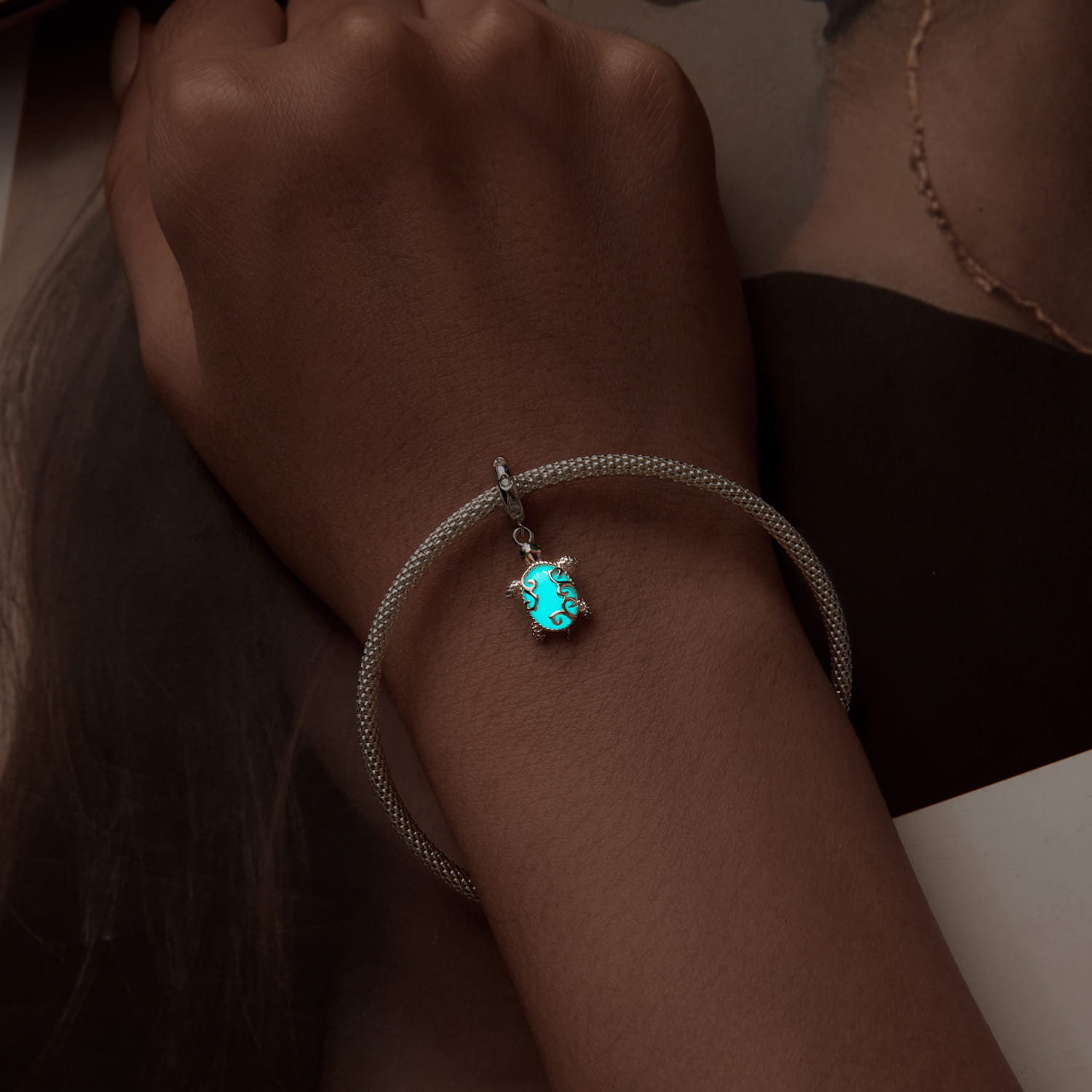 Charms Srebro 925 - Świecący Żółw Czerwiński
