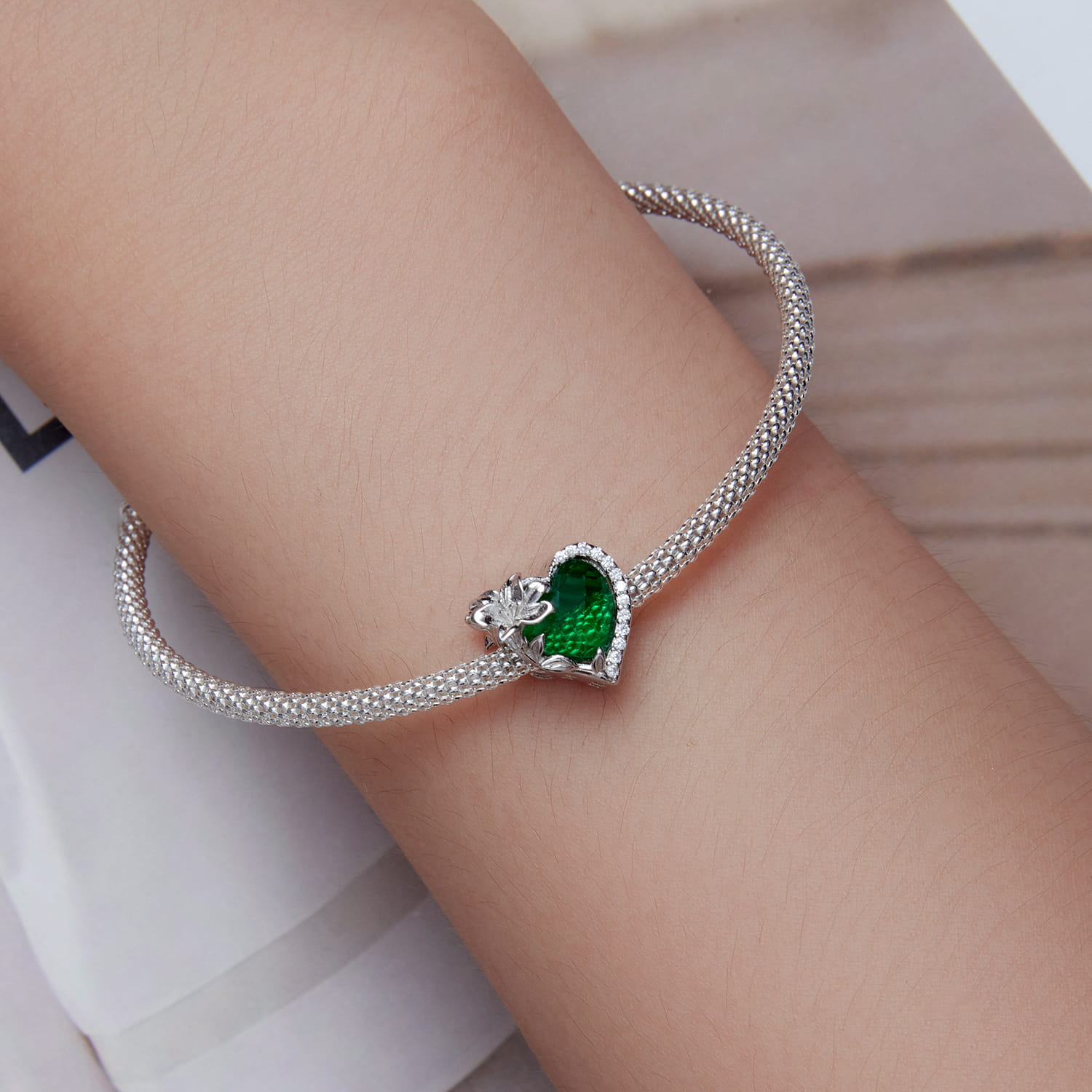 Charms Srebro - URODZINOWE ZIELONE SERCE, MAJ
