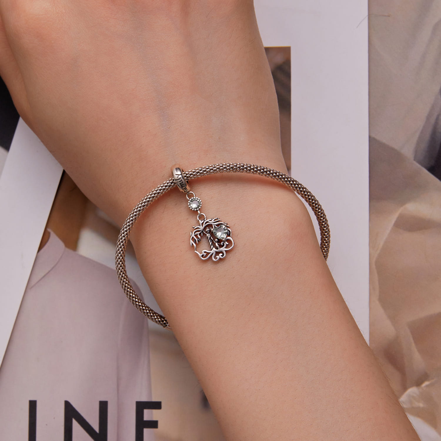 Charms Srebro - Wiszące Drzewo Życia to wisząca zawieszka wykonana ze srebra próby 925. Charms ma kształt drzewa życia z cyrkonią. Drzewo życia jest symbolem życia, harmonii i równowagi. Jest to uniwersalny symbol, który występuje w wielu kulturach na całym świecie. Drzewo życia często jest przedstawiane jako drzewo z rozgałęzionymi korzeniami i gałęziami, które symbolizują połączenie między niebem, ziemią i światem podziemnym. Drzewo życia jest również symbolem wzrostu, rozwoju i odrodzenia. Jest to symbol nadziei i możliwości. Drzewo życia może być również symbolem rodziny, więzi i miłości. Charms można nosić na bransolecie modułowej, łącząc go z innymi charmsami. Można również nosić go jako samodzielną zawieszkę na łańcuszku.