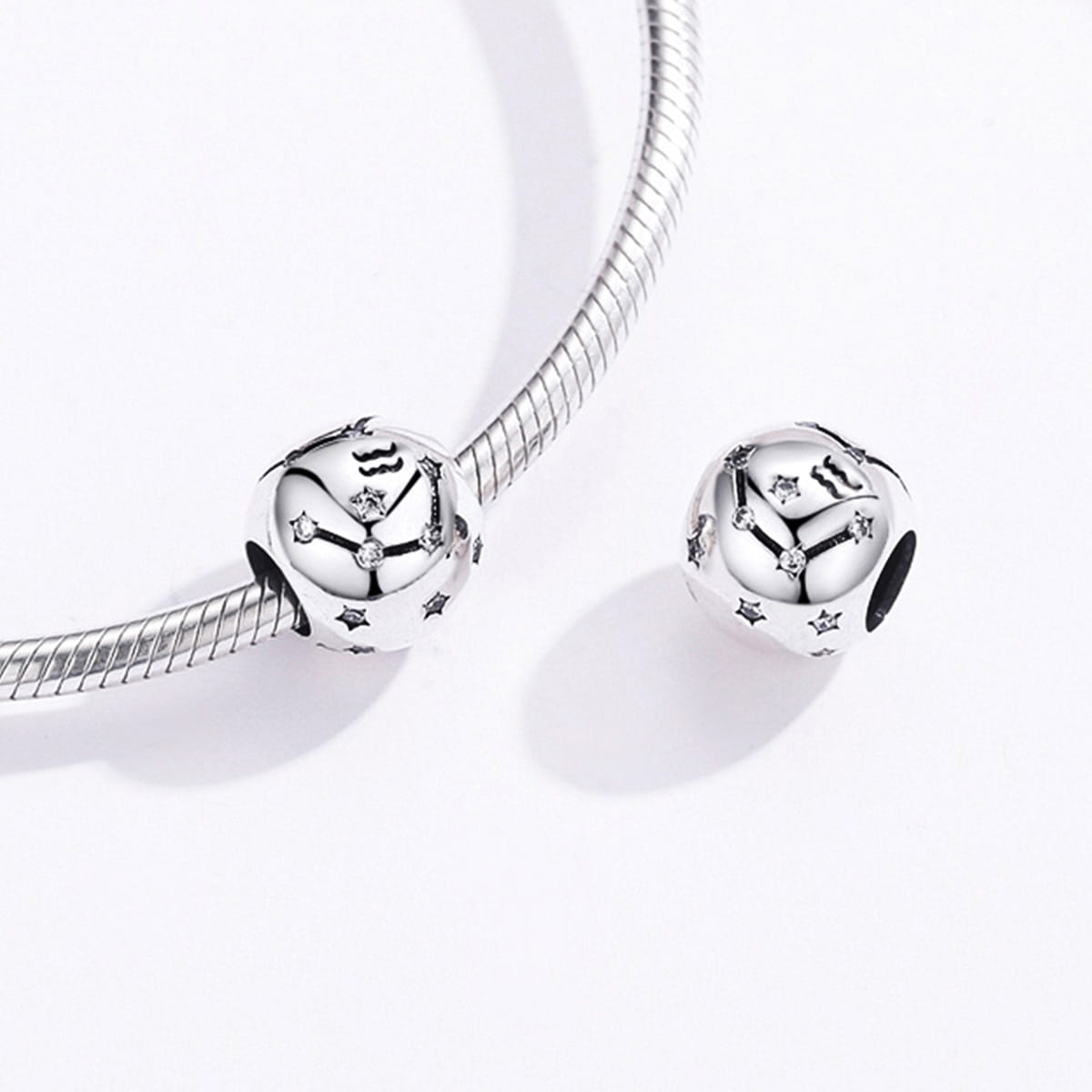 Charms wykonany jest ze srebra próby 925, symbolizujący znak zodiaku RYBY. Wyróżnia się starannym i estetycznym wykonaniem oraz subtelną stylizacją. Gównymi cechami tego znaku są: komunikatywność, otwartość, empatia, bezinteresowność, opiekuńczość, naiwność oraz spryt.osoby urodzone między 19 lutym a 20 marca są spod tego znaku zodiaku. Charms będzie idelanym prezentem dla osób charakteryzujących się tym znakiem zodiaku.