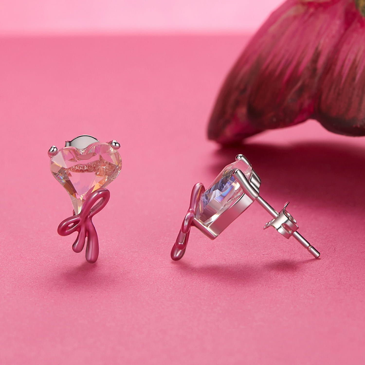 Kolczyki Srebrne - RÓŻOWA WSTĄŻKA