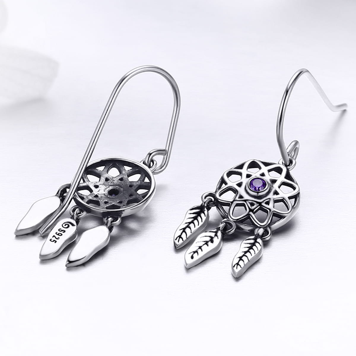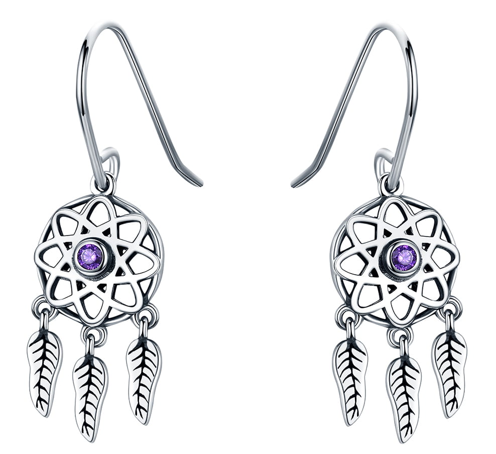 Srebrne Kolczyki - FIOLETOWY DREAMCATCHER
