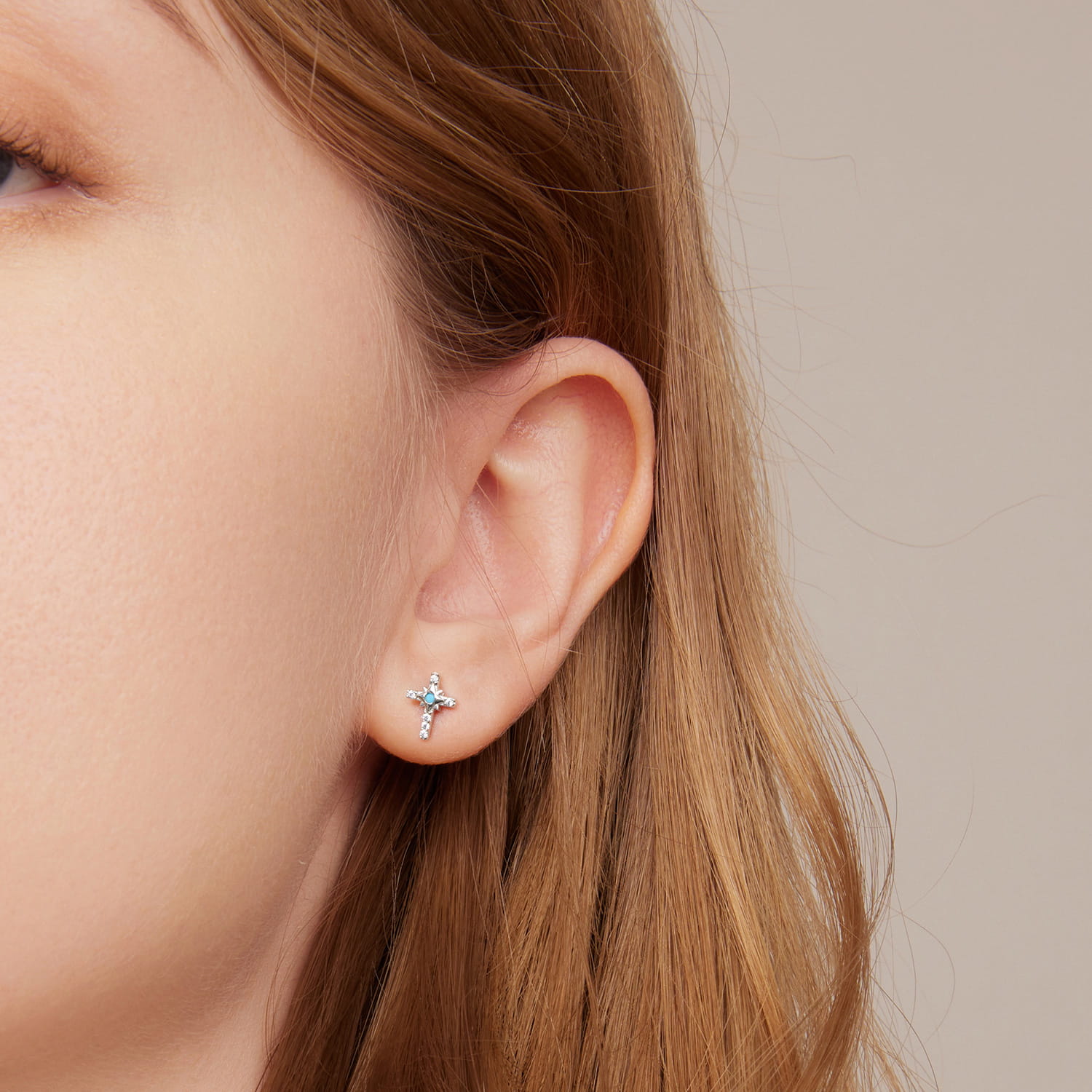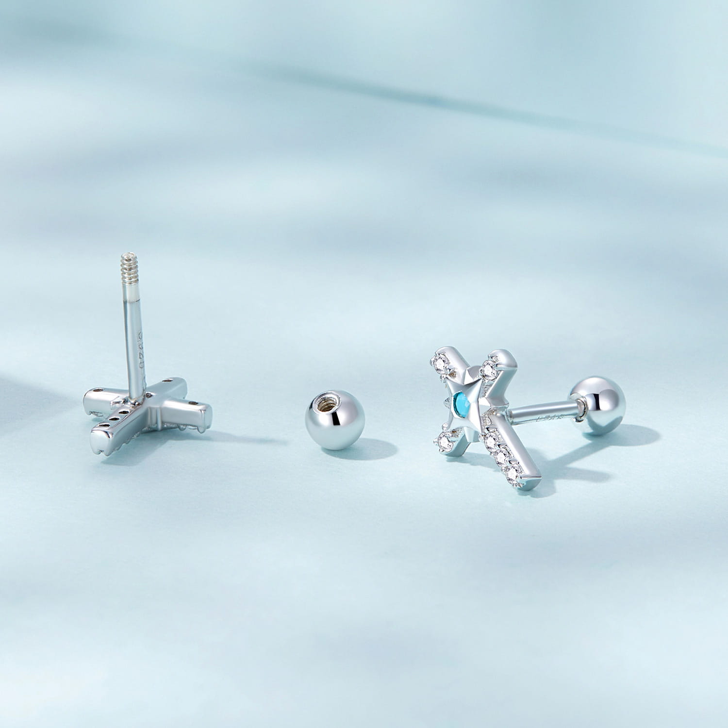 Srebrne Kolczyki - KRZYŻ Z NIEBIESKIM AKCENTEM