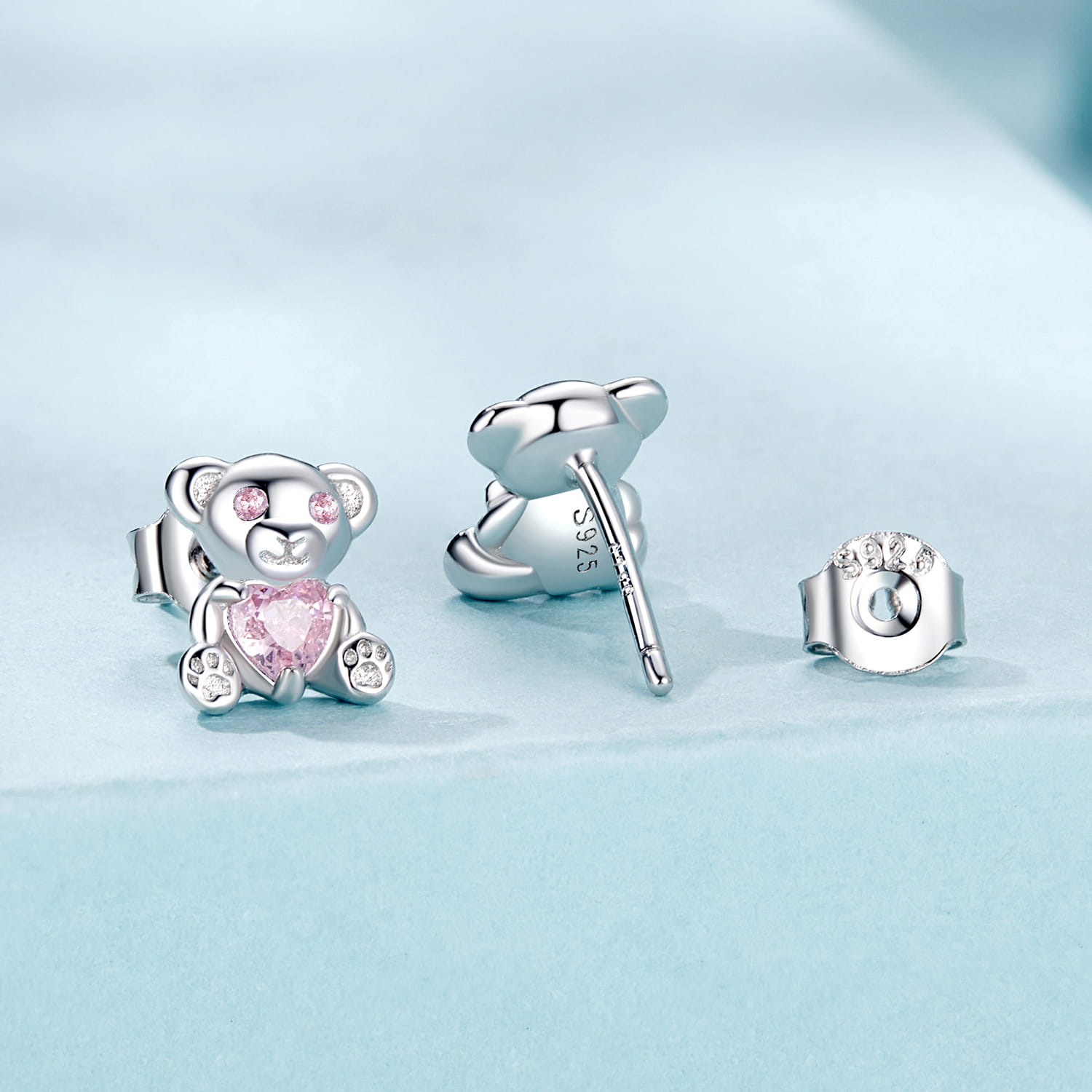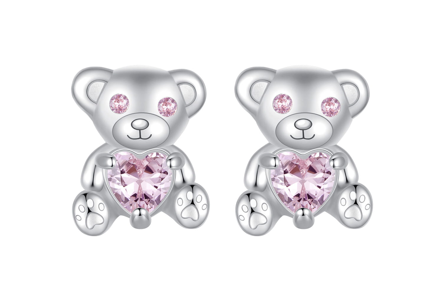 Srebrne Kolczyki - Miś z Różowym Sercem Czerwiński