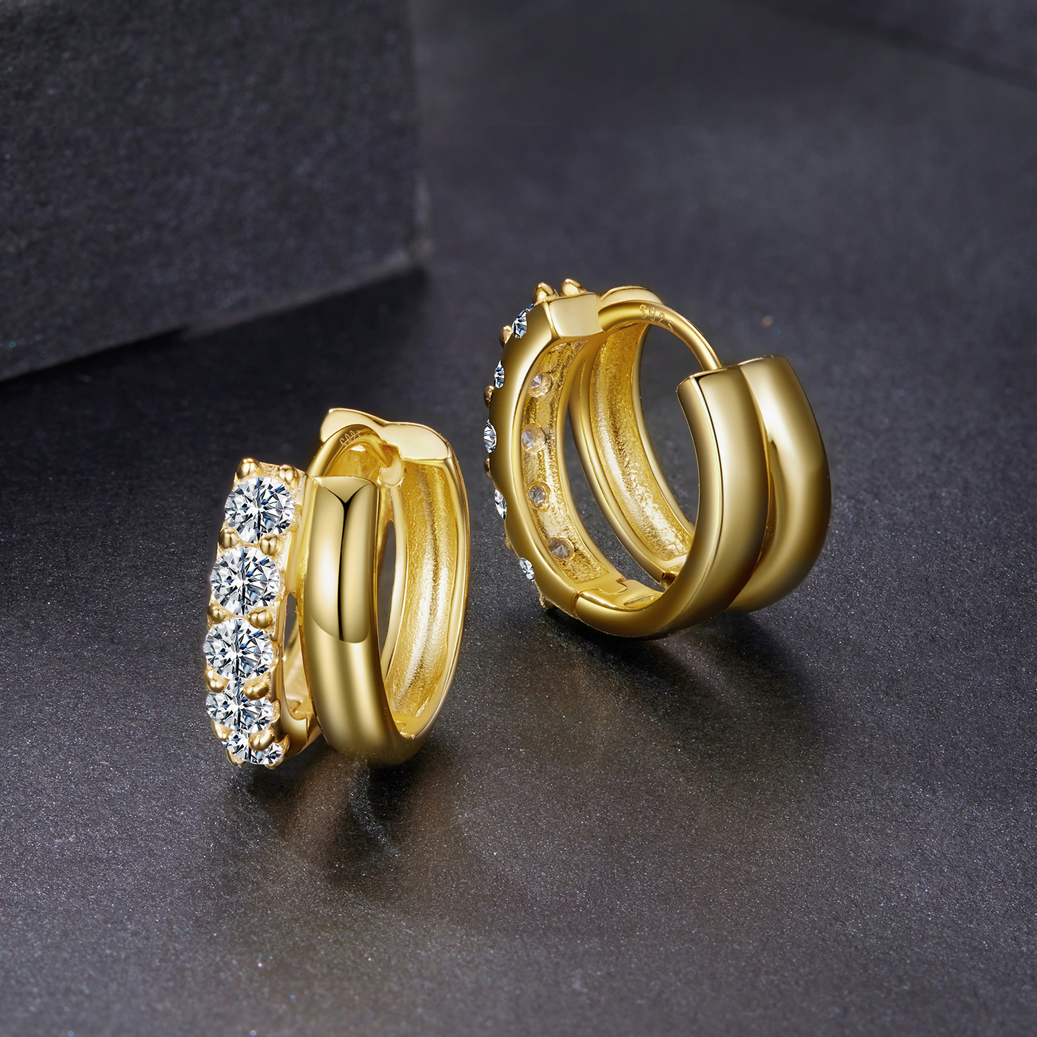 Srebrne Kolczyki - SZLACHETNY BLASK ZŁOTY, MOISSANIT