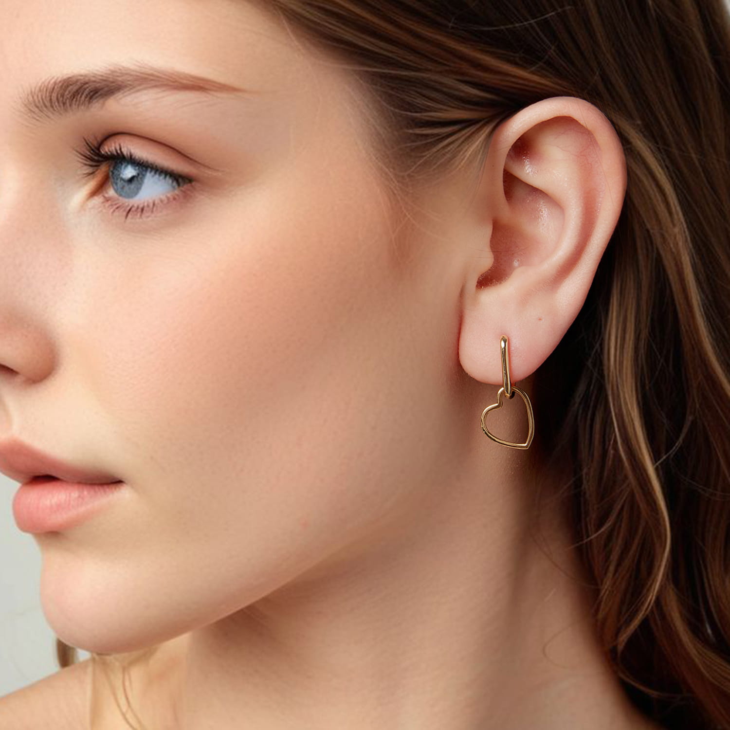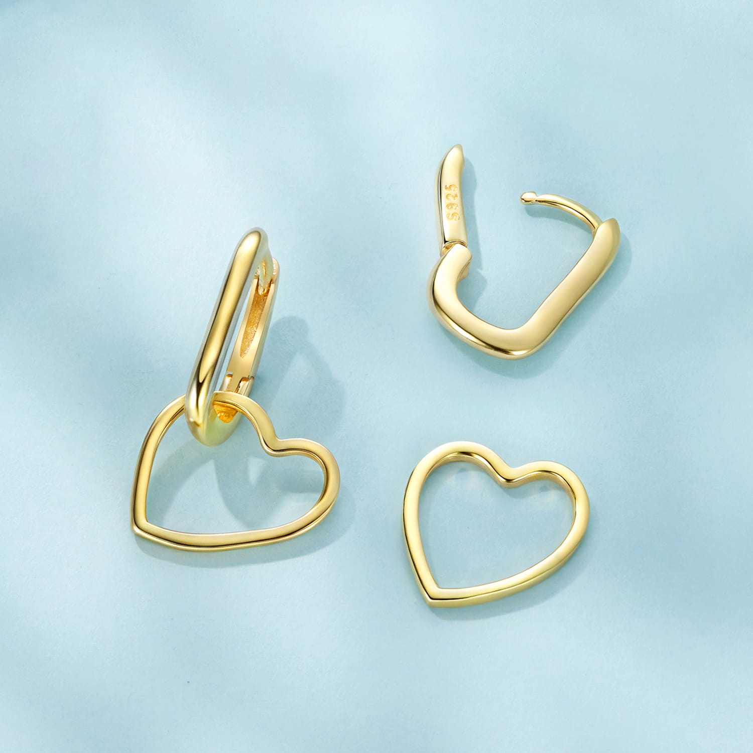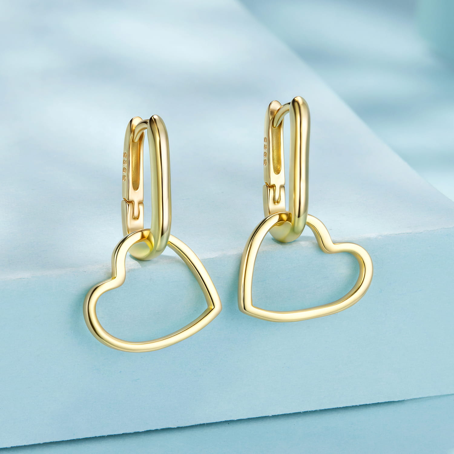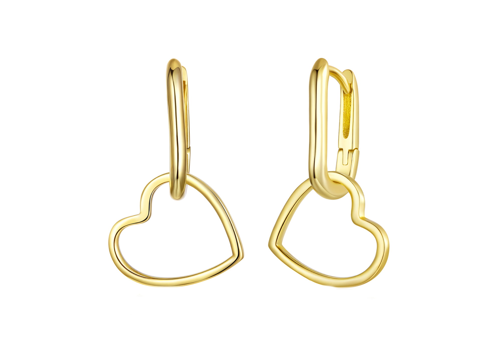 Srebrne Kolczyki - WISZĄCE SERCE, ZŁOTY